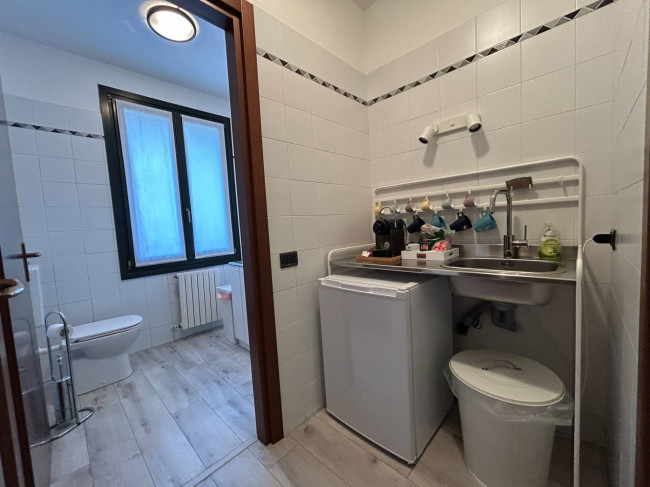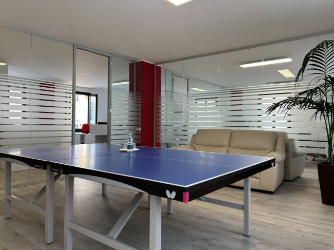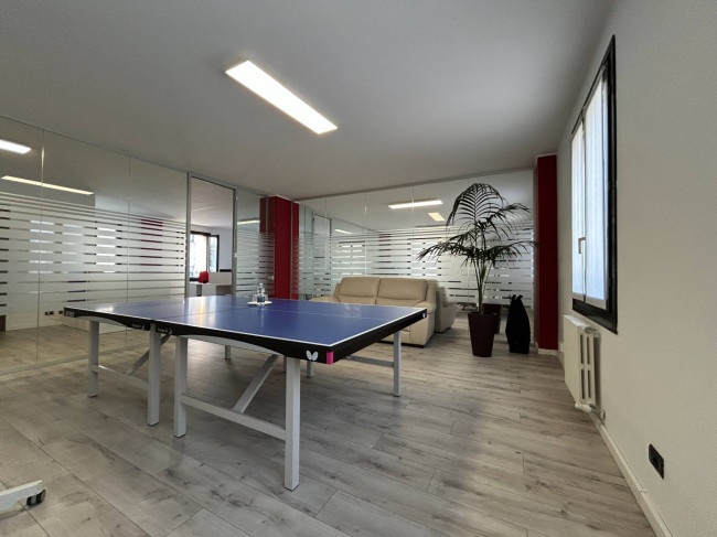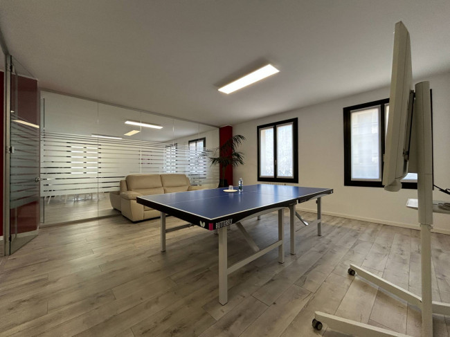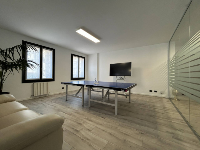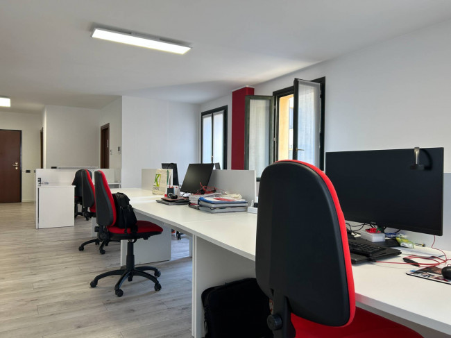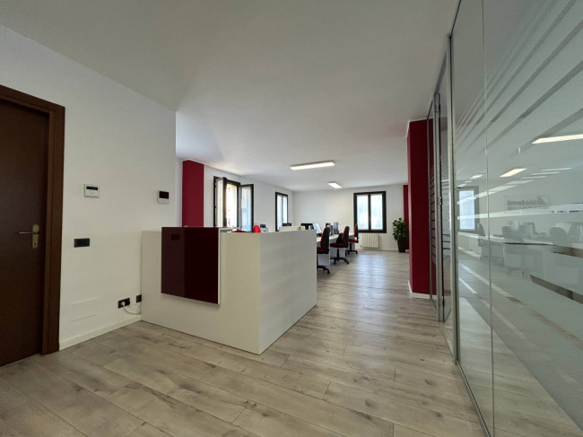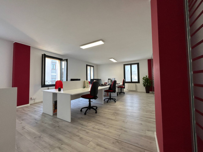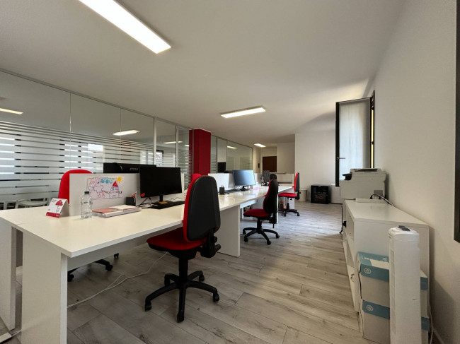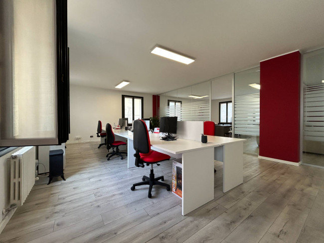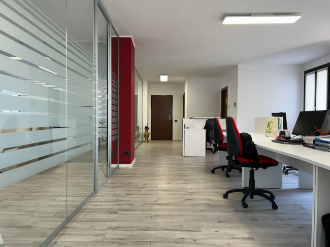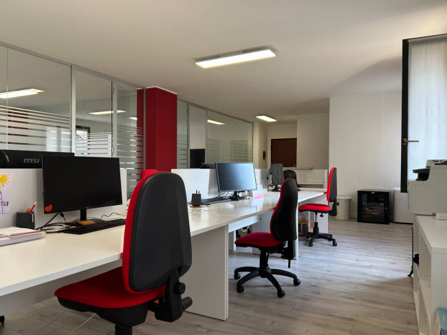 L'ufficio, rinnovato di recente, ha un bagno con un antibagno ed un locale caldaia e si presenta già strutturato e suddiviso da pareti in vetro, scrivanie e mobilio da ufficio.