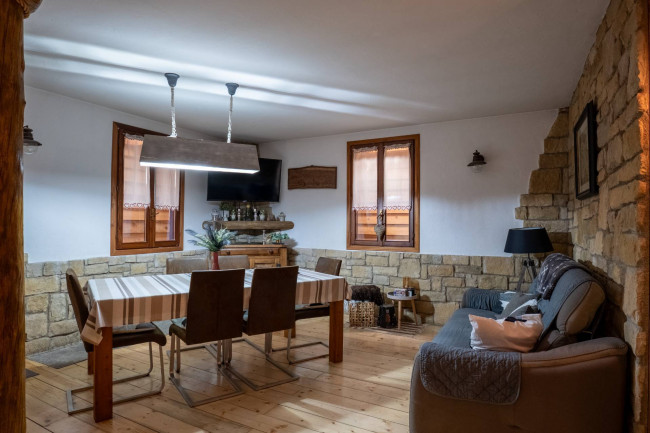Dalla Villa, lo sguardo spazia libero su panorami che si accendono di colori diversi a seconda delle ore del giorno: al mattino la luce illumina le cime innevate, mentre al tramonto il cielo si tinge di sfumature calde che creano scenari di rara suggestione. Un luogo che non è solo una residenza, ma un'esperienza di vita autentica, dove eleganza e natura si incontrano in perfetta armonia.